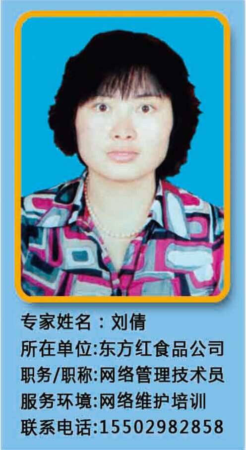 劉 倩---東方紅食品公司網(wǎng)絡(luò )管理技術(shù)員