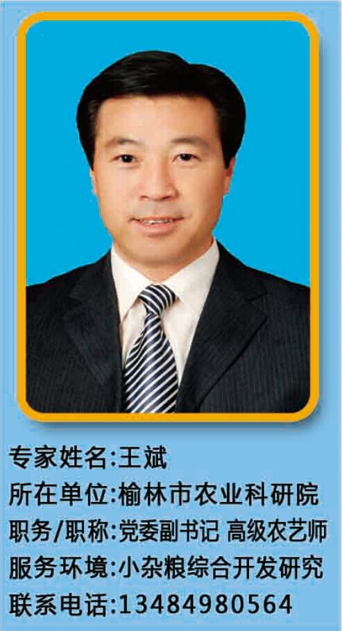 王斌:男,1965年2月出生,陜西綏德縣人。1985年5月加入中國共產(chǎn)黨,1989年7月畢業(yè)于西北農林科技大學(xué),同年8月分配到榆林市農業(yè)科學(xué)研究院工作至今,現為榆林市農業(yè)科學(xué)研究院黨委副書(shū)記,高級農藝師,榆林市有突出貢獻專(zhuān)家。