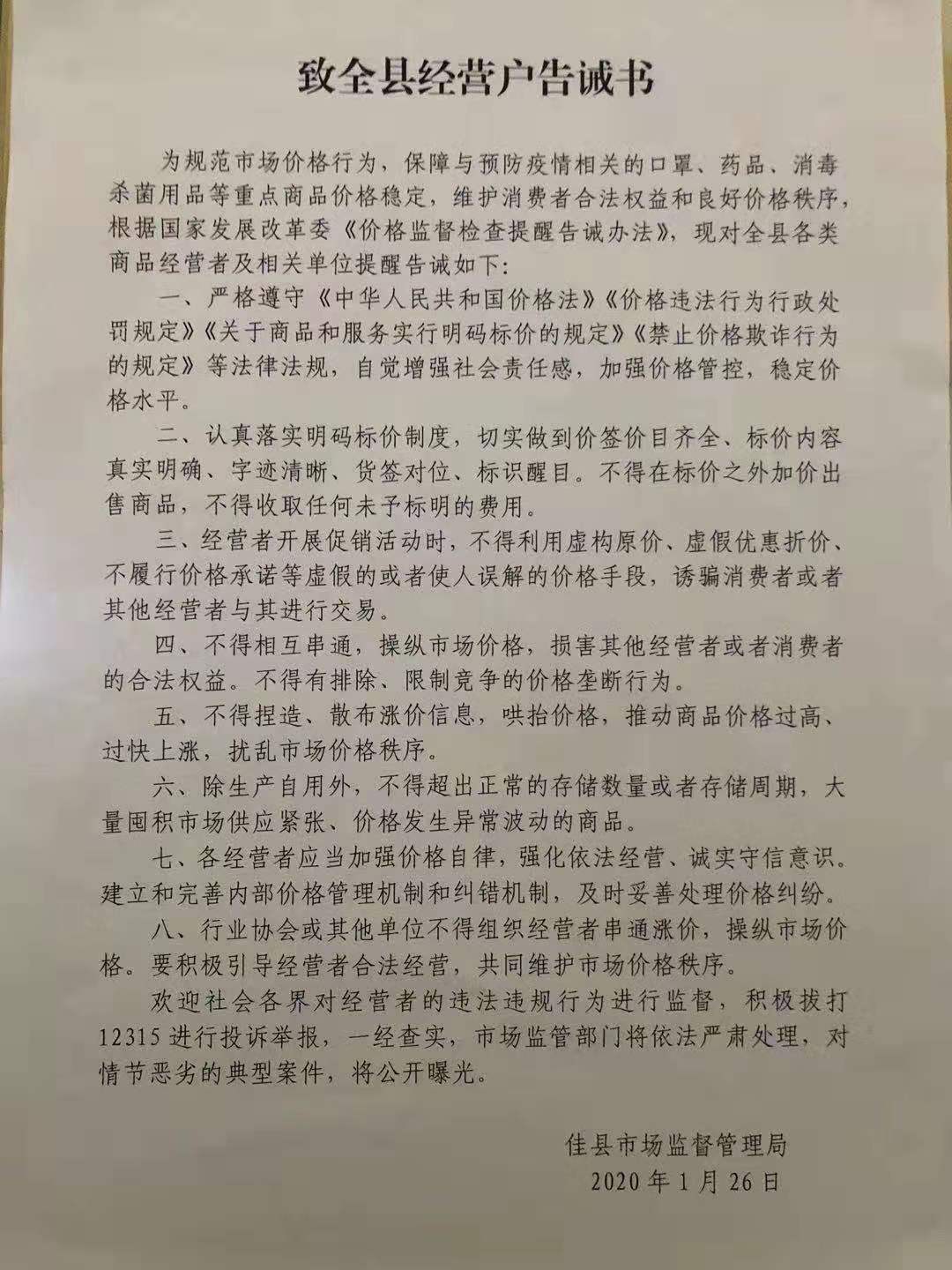 致全縣經(jīng)營(yíng)戶(hù)告誡書(shū)